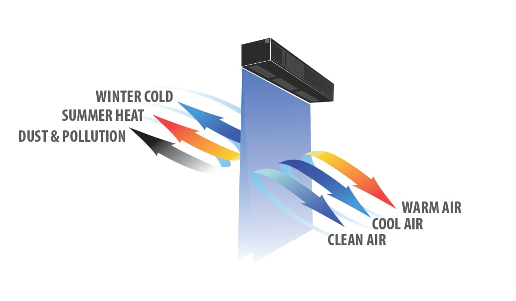 - Heated air curtains not only reduce infiltration but also add comfort by preventing drafts.
